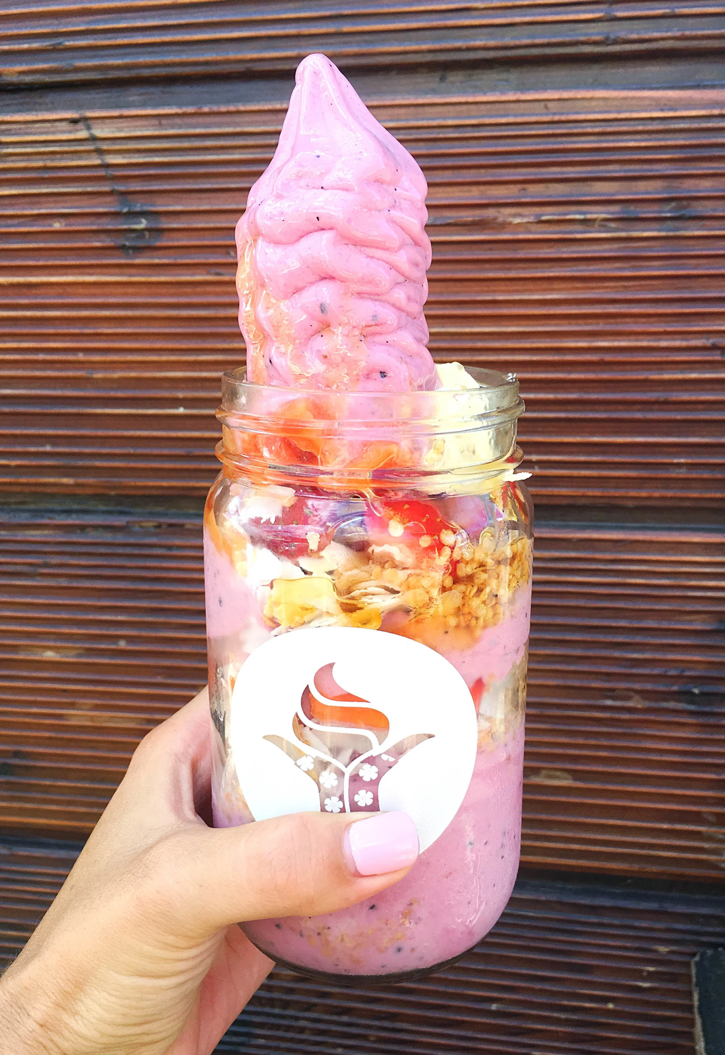 This is my favorite spot for an afternoon snack! And if you're dairy free like me, you MUST try it! Banana is frozen yogurt without the diary! All of it is made from BANANAS! Yum!!! It's located for Monsaratt avenue in a food truck next to the Coffee Bean. You can load it with all the fruit, puffed quinoa, bananas, or even chocolate a local honey! My favorite is the organically with papaya and strawberries. They also have locations in Kahala Mall and Manoa.