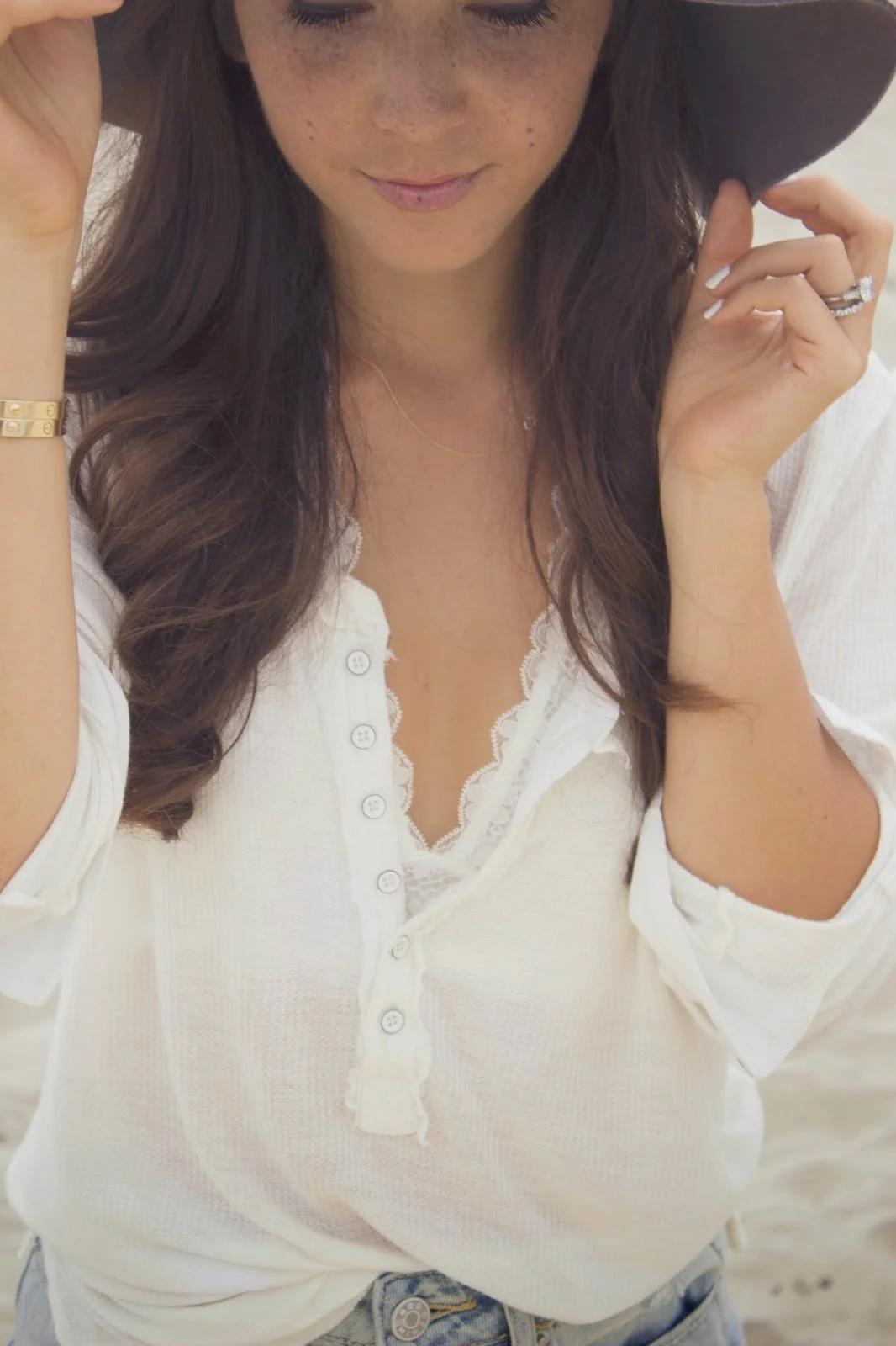 An oversized t-shirt and cut off jean shorts on a chilly beach day is my bliss. So when my good friend Claire Martin told me about her inspiration for styling this look I knew it would be perfect. As Free People Carlsbad's Senior Stylist, Martin has a keen eye for taking a