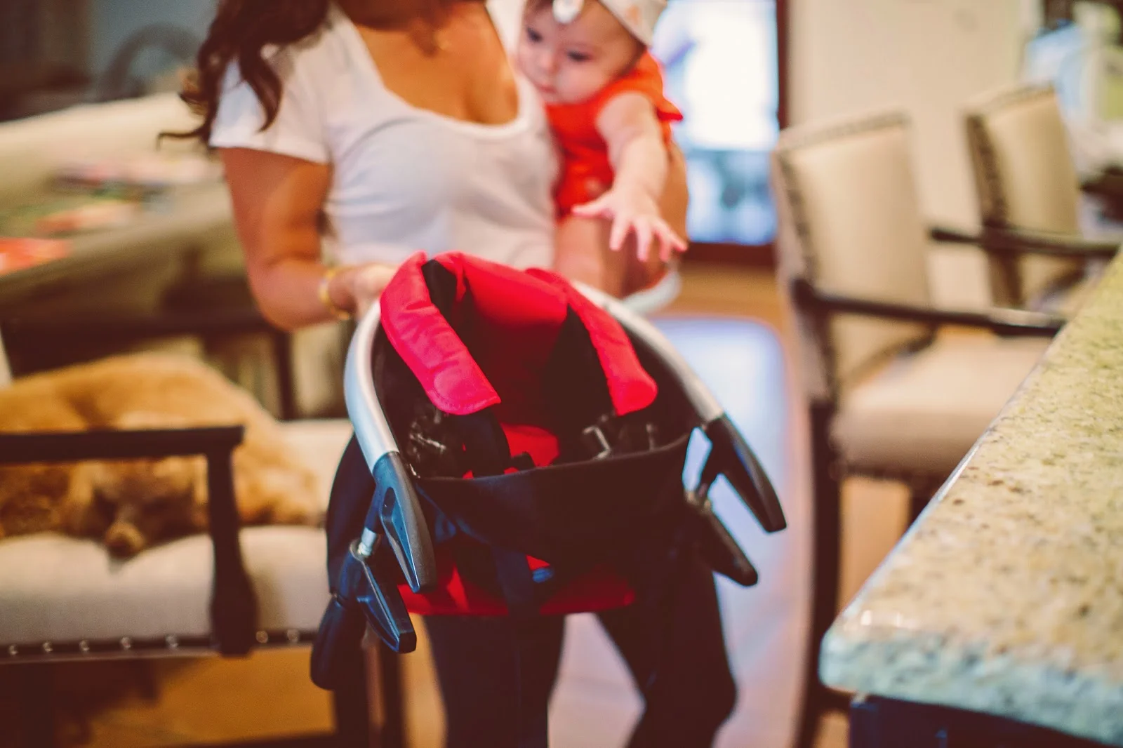 "Babe, Can you grab the lobster?" If you ask my hubby, he'll tell you he hears that question almost every day. That's because the lobster travel high chair is a baby product I cannot live without. Not to mention, EVERY time I take it out in public I get asked, "where can I find one?" I figured if there are this many mommies who don't know about it, it's probably worth writing about, so here it is :)