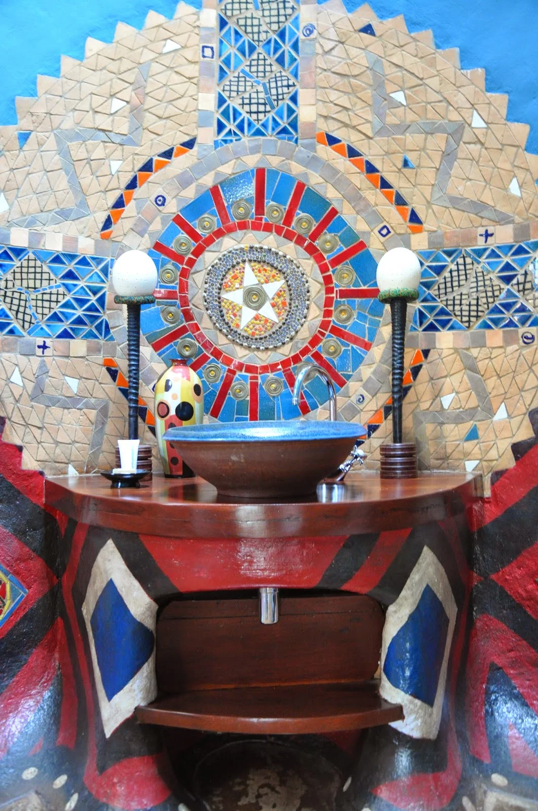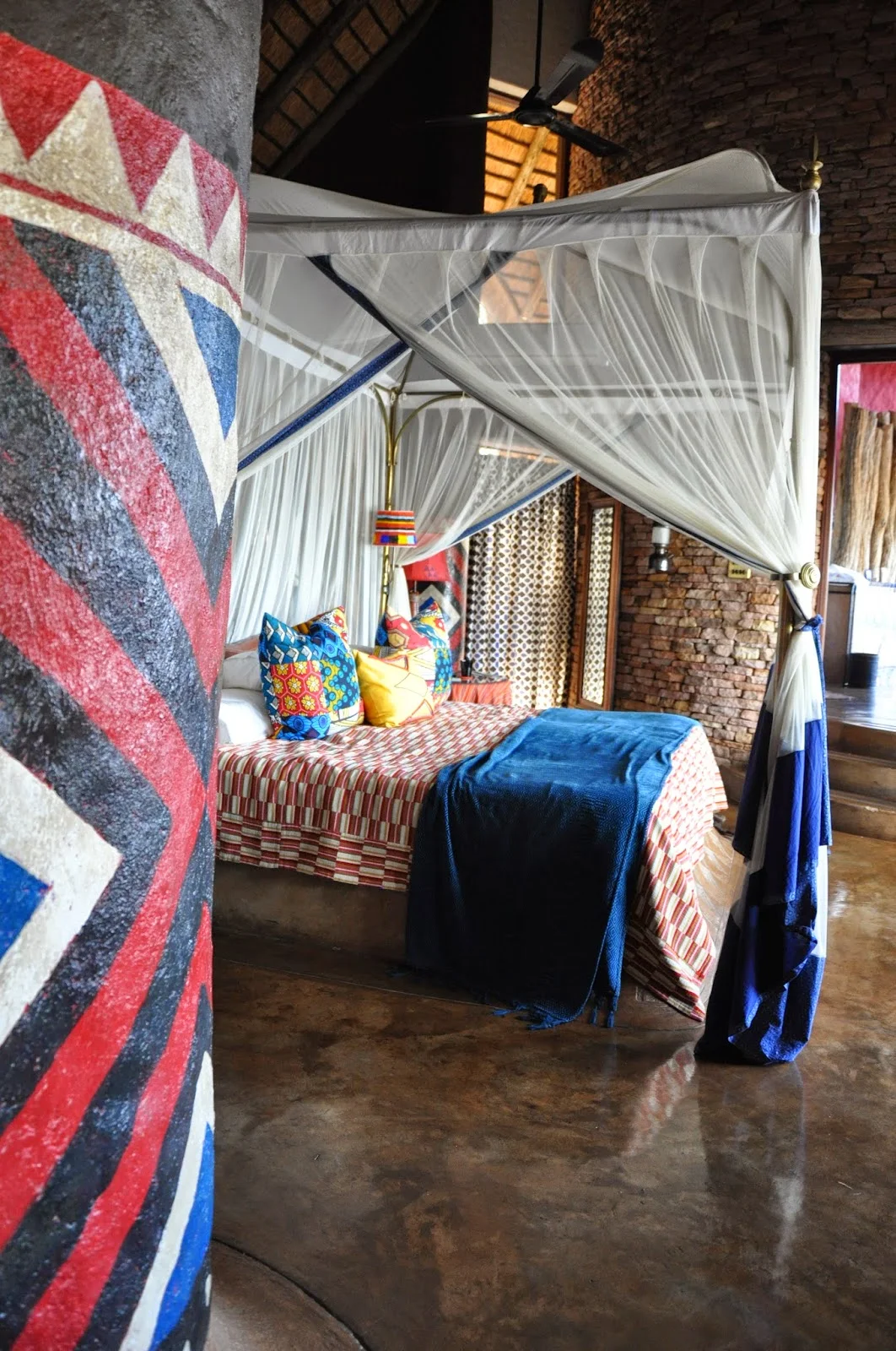We stayed in a very private lodge with only 7 rooms, each filled with hand painted wall art, private pools that looked out to watering holes for wildlife, and floor to ceiling windows. As my husband would say, I went a little camera happy taking pictures of all the vibrant colors, textures, and patterns throughout our room. But who wouldn't? Look how stunning this is! Hope you enjoy.